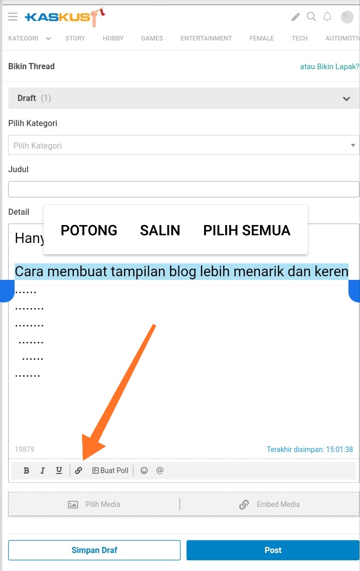 6.Hal yang penting yaitu kamu menanamkan link blog kamu dalam postingan tersebut caranya pada gambar dibawah.